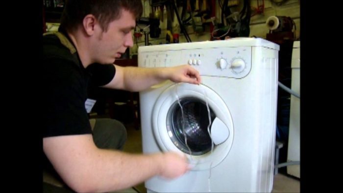Данный способ следует использовать только в тех ситуациях, когда точно известно, что дверца не открывается из-за сломанной ручки. Для спасения белья понадобится шнур или веревка, диаметра, который будет превышать диаметр загрузочного люка.
