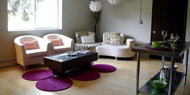 Большие ковры создают оптическую иллюзию большего пространства, что хорошо для маленьких квартир. Кроме того, они придадут уют и преобразят невзрачную комнату, особенно если вы выберете цветные коврики.