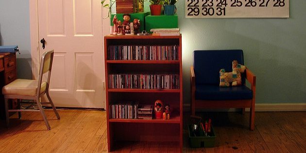 Полки придётся прибивать к стене, поэтому небольшие стеллажи гораздо удобнее. Выбирайте те, которые легко переносить и устанавливать. Отличным вариантом станут стеллажи на колёсиках — их просто перемещать из одной комнаты в другую.
