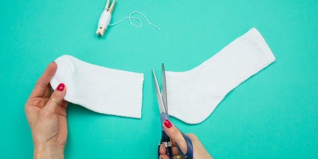 Разрежьте носок пополам по стопе рядом с пяткой.