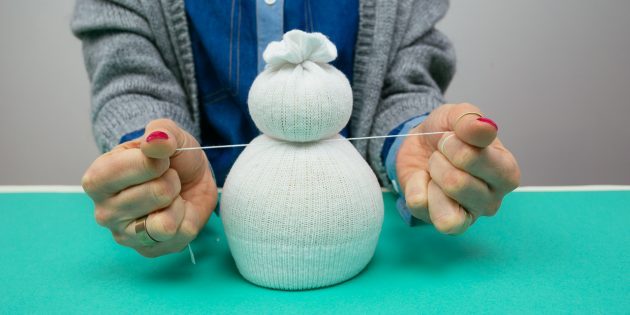 Придайте фигуре форму снеговика, слегка сжав носок чуть выше середины.