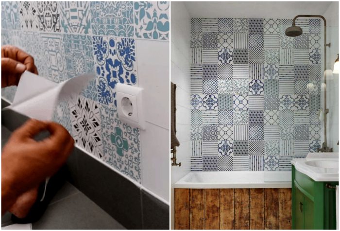 Если вы думаете, что наклейки в ванной комнате могут порадовать исключительно детей, вы сильно ошибаетесь. Ассортимент современных наклеек настолько широк, что с их помощью можно сделать косметический ремонт на скорую руку. Особое внимание рекомендуем обратить на наклейки, имитирующие керамическую плитку. Нужно просто наклеить их поверх уже существующей плитки и яркая акцентная стена готова.