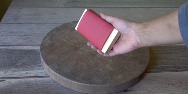 Авторы этого мастер-класса используют ненужную разделочную доску. Если вы тоже взяли старую деревянную деталь, которая выглядит не очень красиво, подготовьте её. Сперва зашлифуйте всю поверхность.