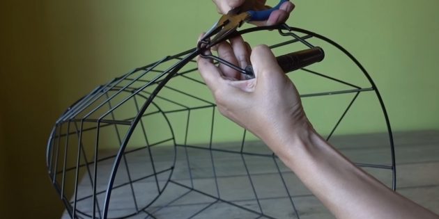 Если на корзине есть ручки, снимите их с помощью плоскогубцев.