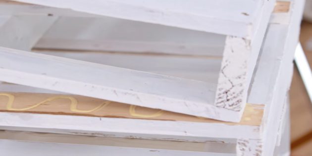 По желанию можно пройтись по дереву наждачкой, чтобы придать ему винтажный вид.