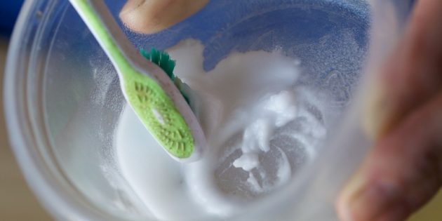 Соедините соду и воду в миске. Должна получиться густая кашица. Натирайте получившейся смесью серебряные изделия с помощью зубной щётки или губки. Затем сполосните водой и вытрите насухо.