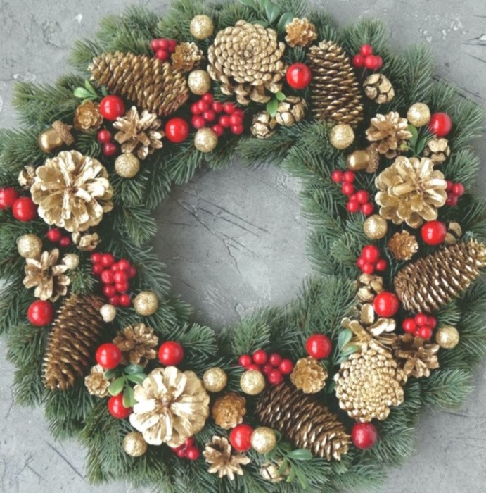 Зеленый рождественский венок — это повод хорошо провести время, создавая его, а также добавить своему дому праздничного духа. Его несложно сделать своими руками, используя зеленые веточки ели или сосны, веточки деревьев, ленты, банты, крашенные или натуральные шишки, новогодние украшения и специи. Венок можно повесить на дверь или на стену, украсив видное место дома. Он очень долго сохраняется и прибавляет уюта зимним дням.
