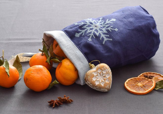 Есть подарочные сеты текстиля для кухни, которые можно использовать не по назначению — дарить карман, в который помещается вкусный багет или набор столовых приборов вместе с сервировочной салфеткой. Что вам мешает насыпать полную «сумку» мандаринов или грецких орехов, купить по дороге в гости красивый багет и отправиться удивлять друзей необычным вкусным подарком.