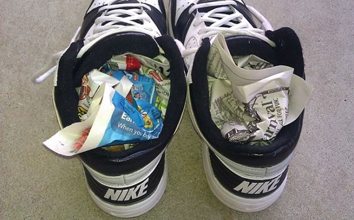 Чтобы зимой обувь не ссыхалась и не теряла форму, в ее носок нужно плотно набить газеты. Если не хочется, чтобы на голенище появились заломы, можно и их наполнить газетами, чтобы они стояли вертикально. Этот же способ подходит для любых вещей, например сумок.