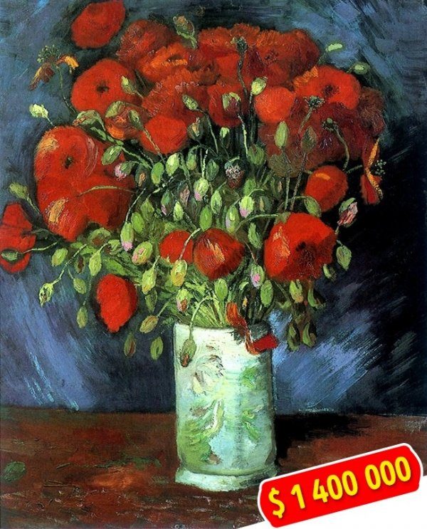 Семейная пара из Висконсина приобрела копию картины Ван Гога «Ваза с красными маками». Репродукция была настолько хороша, что вызвала у супругов подозрения, которые подтвердил оценщик: на самом деле пара купила оригинал 1886 года, стоимость которого равняется $ 1,4 млн.