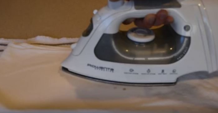 Итак, первое, что нам придется сделать, – это взять наш утюг и налить 100-150 мл столового уксуса в резервуар для воды. После этого необходимо включить устройство на среднюю температуру и дать ему некоторое время для прогревания. Между тем, устанавливаем гладильную доску и кладем на нее приготовленную заранее ткань. Когда утюг прогреется, начинаем утюжить им заготовку, постоянно используя функцию подачи пара. Процесс продолжаем до тех самых пор, пока в емкости для воды будет оставаться кислота.