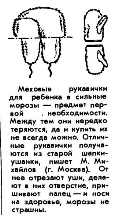 Довольно удивительно, но варежки в Советском союзе были дефицитным товаром, а согревать детские ладошки в зимние месяцы нужно было. Поэтому в ход и шли старые шапки-ушанки, благо на их отсутствие никогда не жаловались.