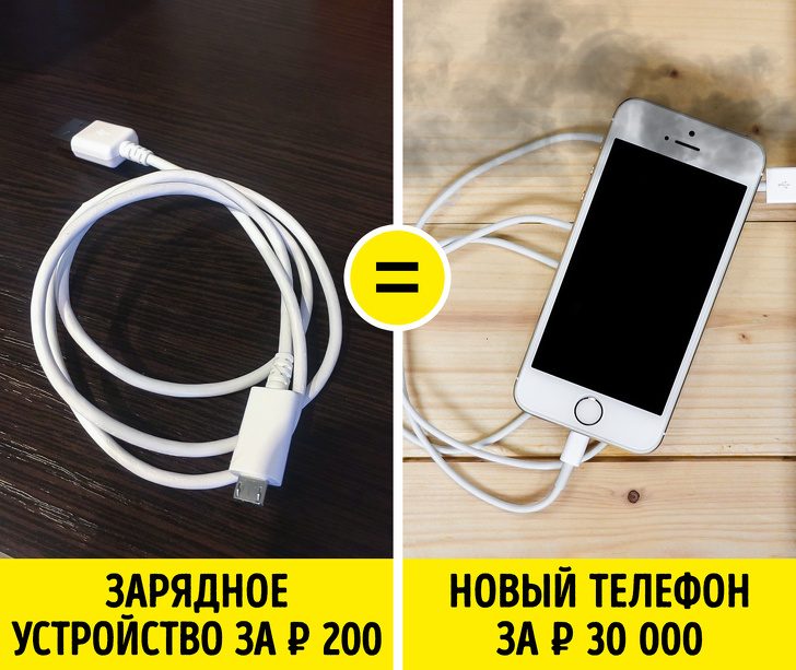 Нередко бывает так, что телефон надолго переживает свое заводское зарядное устройство — приходится покупать новое. При этом некоторые производители предлагают купить оригинальный зарядник за ₽ 3 000 или даже больше — желание сэкономить и купить аксессуар попроще в этом случае вполне оправданно. Вот только вместе с новым зарядником, вероятно, придется покупать и новый телефон: некачественные зарядные устройства могут спровоцировать короткое замыкание, испортить аккумулятор или даже сжечь смартфон.