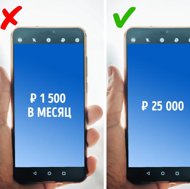 Многие сотовые операторы предлагают купить у них смартфоны с привлекательной беспроцентной рассрочкой. Главное условие покупки — приобрести телефон вместе с тарифным планом, который вы не должны менять несколько месяцев или даже лет. И в большинстве случаев такой тариф будет одним из самых невыгодных: небольшие пакеты услуг по высокой цене, которая в будущем может возрасти снова. Получается, что вы не платите проценты по рассрочке, но переплачиваете за неудобный тариф и так или иначе теряете деньги.