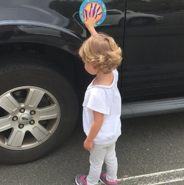 Чтобы ребенок не отходил от машины, пока вы достаете пакеты или занимаетесь другими детьми, приклейте где-нибудь сбоку цветную наклейку с ладошкой. Она отвлечет и займет малыша на необходимое время. А если понадобится усилить эффект, пообещайте какое-нибудь поощрение, если он продержит руку на наклейке столько, сколько потребуется.