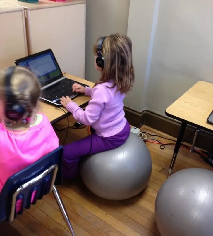 7. Сидение на фитболе вместо стула во время выполнения домашних заданий улучшит концентрацию внимания ребенка