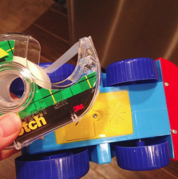 4. Приглушите звуки, которые издают игрушки, наклеив поверх динамиков клейкую ленту