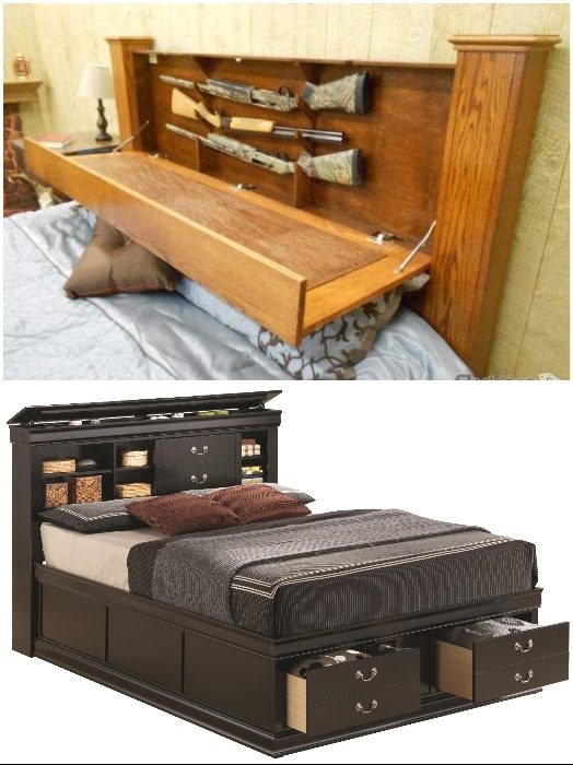 Изголовье кровати можно более рационально использовать, ведь не только подушку во время сна оно может удерживать или украшать интерьер. Бывают такие модели кроватей, в изголовье которых уже встроены потайные ящики для постельных принадлежностей, мастеровые же люди могут сделать это и сами. И если не получится пристроить в них подушки или одеяла, то тайник с самыми неожиданными вещами устроить можно точно.
