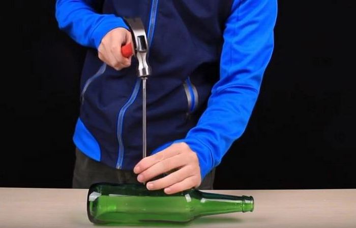 Рано или поздно в хозяйстве может потребоваться осуществить весьма необычную операцию, а именно – продырявить стеклянную бутылку так, чтобы она ни в коем случае не лопнула и не треснула в процессе. Идеальным вариантом для такой «спецоперации» был бы обычный гвоздь. Однако на самом деле проделать ровное и надежное отверстие совсем не так просто, как может показаться на первый взгляд.