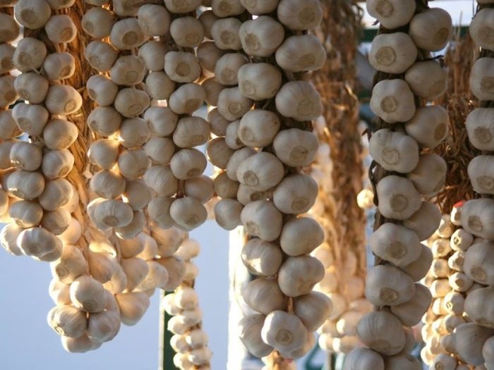 Для того, чтобы чеснок не портился (в первую очередь не сгнил), необходимо пересыпать его головки до отправки на хранение сухой горчицей. Кроме того, категорически запрещено хранить в одном месте разные сорта чеснока. Наконец, не следует забывать о важности внимательной проверки головок во время уборки урожая и выбраковке тех, что уже находятся не в лучшем состоянии.