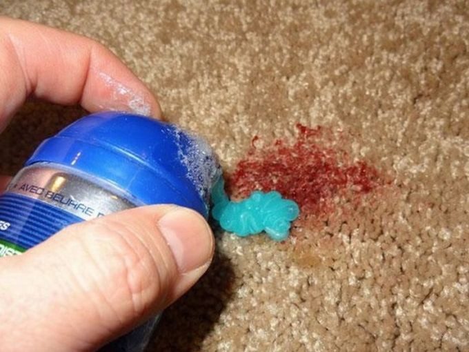 2. От многих пятен есть простое, но очень эффективное средство – пена для бритья. Ее нужно нанести на грязное место и оставить на полчаса. Затем протрите салфеткой.