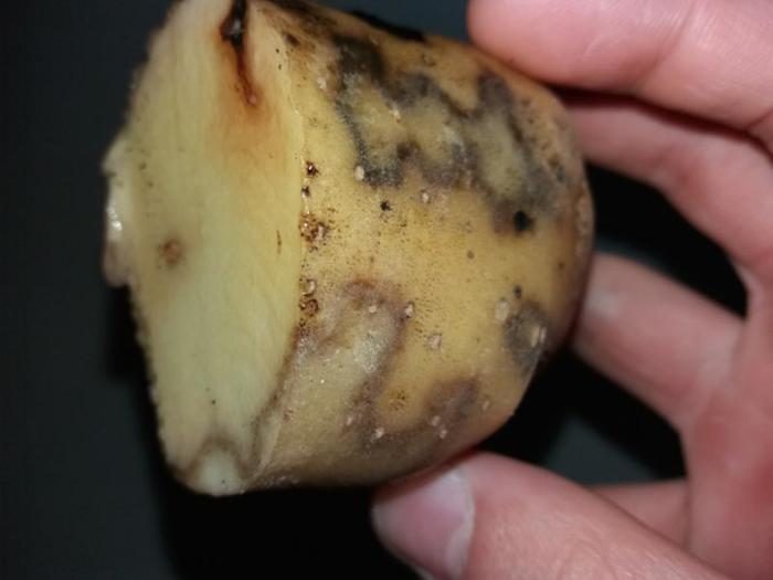 Соответственно, степень потемнения картофеля во многом будет зависеть от соотношения упомянутых элементов. Несложно догадаться, чем выше их концентрация, тем темнее и насыщеннее будут пятна, появившиеся в результате реакции. Кстати, формируются такие условия в результате того, что картошку выращивали в почве с недостатком калия и избытком азота.