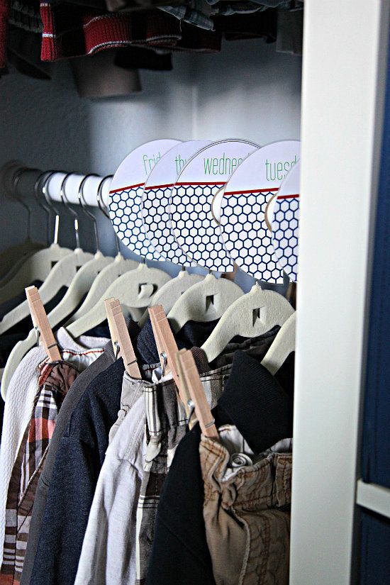 Чтобы не тратить время по утрам, нацепите на каждый набор одежды ярлычок с днем недели.