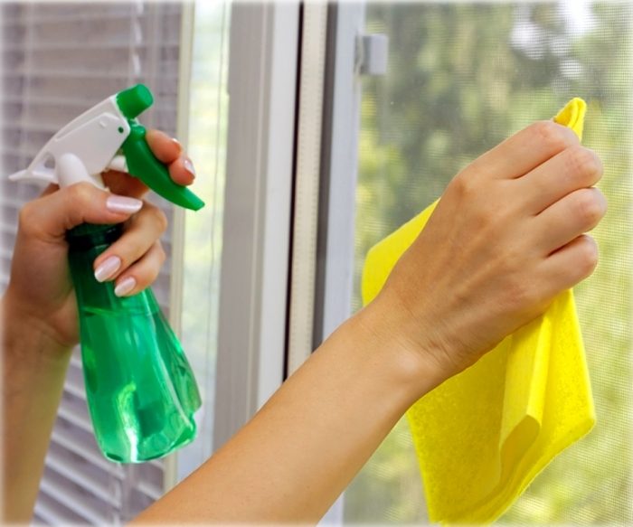 Чтобы окна и зеркала в доме сверкали, необходимо смешать всего несколько ингредиентов. Для смеси понадобится: два стакана воды, четверть стакана спирта 70%, полстакана белого или яблочного уксуса, а также по желанию 1-2 капли апельсинового эфирного масла для запаха. Ингредиенты тщательно перемешиваются и заливаются в распылитель. Для применения спрей наносится на бумажное полотенце или мягкую ткань, а затем растирается по поверхности. Следует учитывать, что раствор высыхает слишком быстро и оставляет много разводов, если его использовать в жаркий солнечный день.5. Универсальное чистящее средство