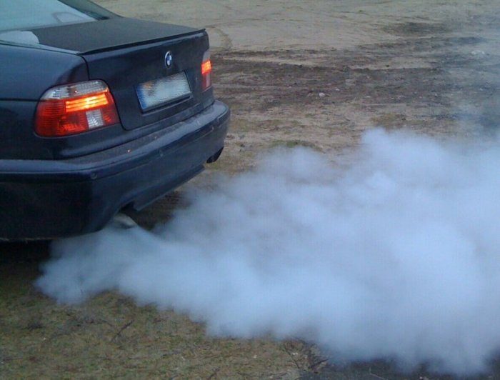 Белый дым – это действительно водяной пар (в большинстве случаев). Появление такого из выхлопной системы — крайне тревожный сигнал. Означает он наличие влаги в системе выпуска. Чаще всего такое случается с плохо прогретыми автомобилями. Еще хуже ситуация, когда белый дым начинает валить из трубы настоящими клубами. Если такое имеет место быть, то в машине уже пробита прокладка головки блока цилиндров. А это значит, что цилиндры заливаются во время работы охлаждающей жидкостью.
