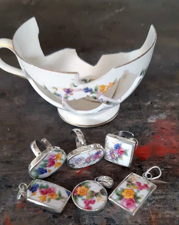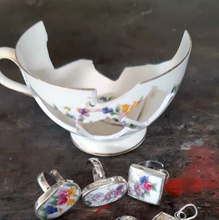 Кольца и кулоны из осколков разбитой чашки