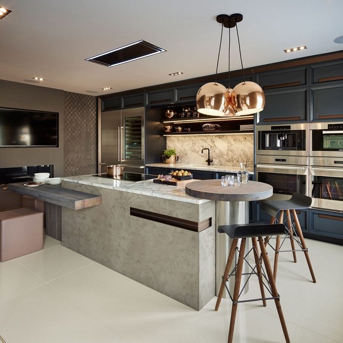 Для люксового ремонта встроенная в потолок вытяжка идеально компенсирует необходимость ее установки над островом.