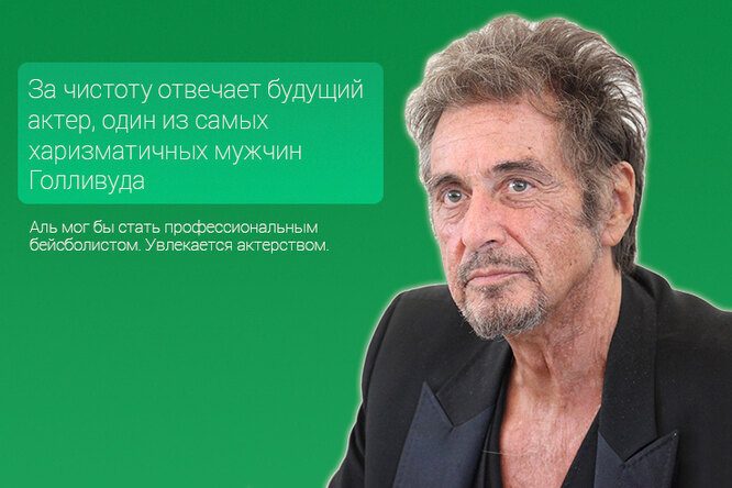 У Вупи Голдберг было тяжелое детство и очень бурная юность. В 14 лет она стала матерью-одиночкой и столкнулась с первыми финансовыми трудностями. Денег в семье было мало, поэтому будущая звезда Голливуда соглашалась на любую работу. В разное время она трудилась официанткой, ночным сторожем и даже гримером в морге. Однако актерский талант и амбиции все же привели ее в кинематограф.Аль Пачино (уборщик)