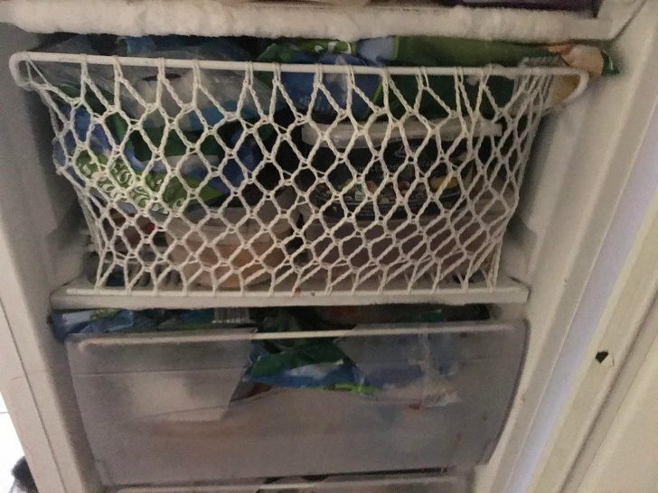 «Сломался короб в морозилке. Я подумал и заменил его вот такой сеткой»