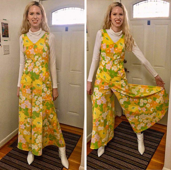 «Обожаю комбинезоны, но из-за своего роста мне сложно найти подходящий. Что ж, я сшила вещь своей мечты из набора простыней»