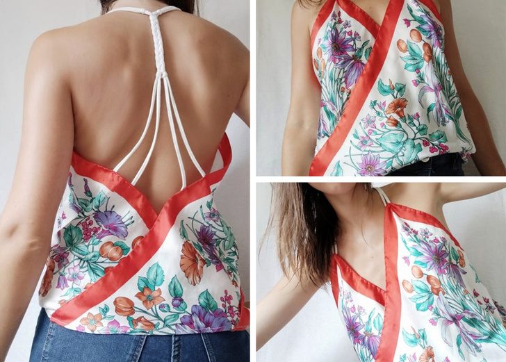 «Я сшила топ из шарфика и пары трикотажных лент»