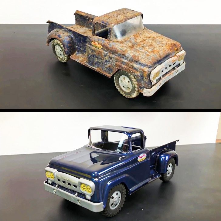 Эта старая железная кофемолка была куплена на eBay за $ 35. Игрушечный грузовик
