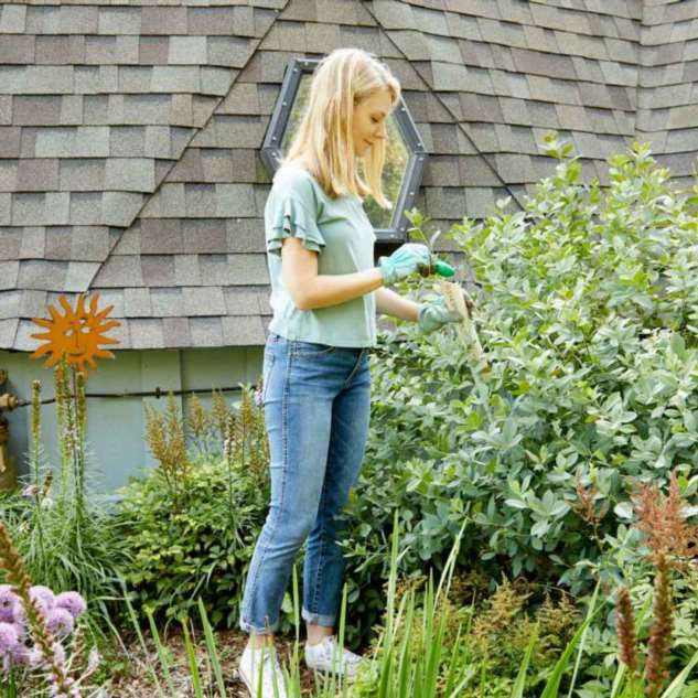 Подкормить густые и высокие кусты так, чтобы удобрение попало к основанию корней, бывает сложно, так как стебли мешают туда подобраться. Для решения проблемы есть простой и изящный выход – использование длинной пластиковой трубки диаметром около 5 см. Они стоят недорого и их легко купить в сантехническом магазине. Верхний конец трубки желательно надрезать под углом 45 градусов. Это увеличит отверстие, и облегчит вливание подкормки. Или можно обрезать верхнюю часть пластиковой бутылки и использовать ее как воронку. Нижний конец трубки подводят к основанию куста, а через верхний вливают удобрение.