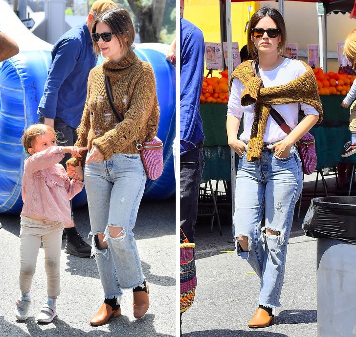 Нет одного признанного способа ношения свитера на плечах, поэтому тут можно от души пофантазировать.