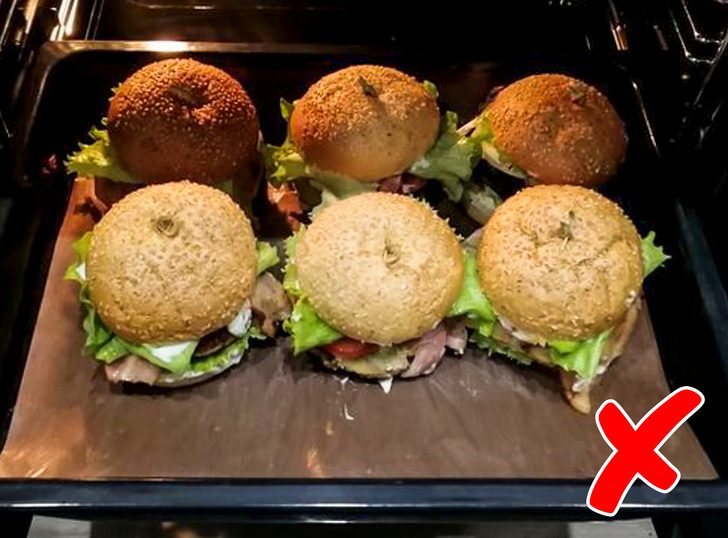 Не верьте рекомендациям о том, что лучше запекать бургер целиком в духовке: он утратит вкус, а овощи потеряют яркий цвет, свежесть и форму.