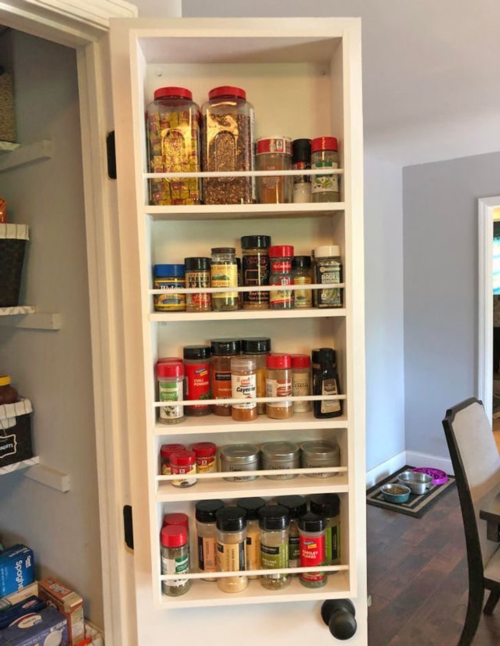 «На нашей маленькой кухне рядом с плитой было немного пустого пространства. Чтобы максимально его использовать, я смастерил полочку под приправы»