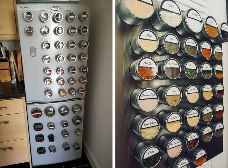 В магнитные баночки можно насыпать специи и разместить их на холодильнике, как магниты