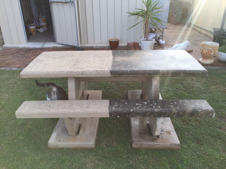«Подобрал эту старую бетонную скамейку. Пришлось воспользоваться мойкой высокого давления!»