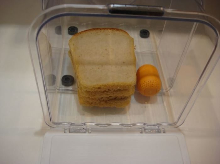 Далее, кладем капсулу с ватным диском в хлебницу в один и з углов так, чтобы она не мешала. Если ранее в хлебнице уже появлялась плесень, то не самой плохой идеей будет предварительно промыть ее теплой водой, хорошенько высушить, протереть уксусом, а затем еще раз помыть теплой водой и высушить. Когда все перечисленное будет сделано, можно класть хлеб на хранении. Одной «заправки» пластикового цилиндра ватным диском с йодом должно хватать примерно на 3-4 дня.