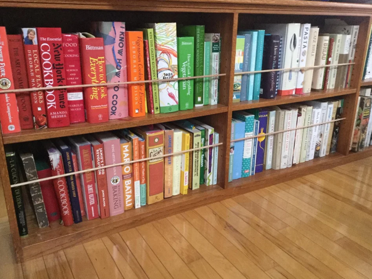 Чтобы ребенок не раскидывал книги, просверлите отверстия в боковых стенках шкафа и вставьте в них деревянные шканты