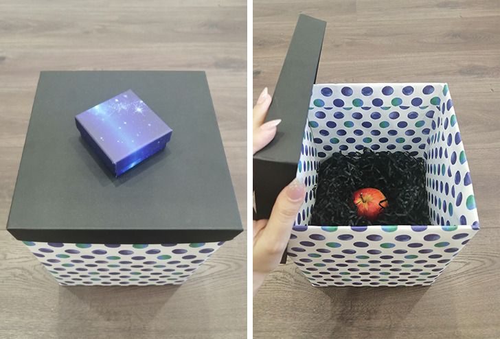 «Сестренка зациклена на том, чтобы ее подарки были больше моих. Мама решила преподать ей урок и однажды предложила такой выбор. Как вы понимаете, она получила яблоко. А в маленькой коробочке были деньги»