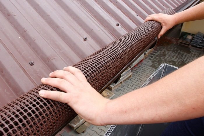Первым делом необходимо будет подняться к водосточной трубе и снять мерки ее диаметра, а также мерки протяженности участков водостока. Как правило, у большинства дачных домов достаточно простая система, состоящая из одного желоба. Однако даже в этом случае следует снять мерки. Нужно это для того, чтобы сетка полностью закрывала собой весь канал. Еще лучше – если она будет немного выступать по краям.