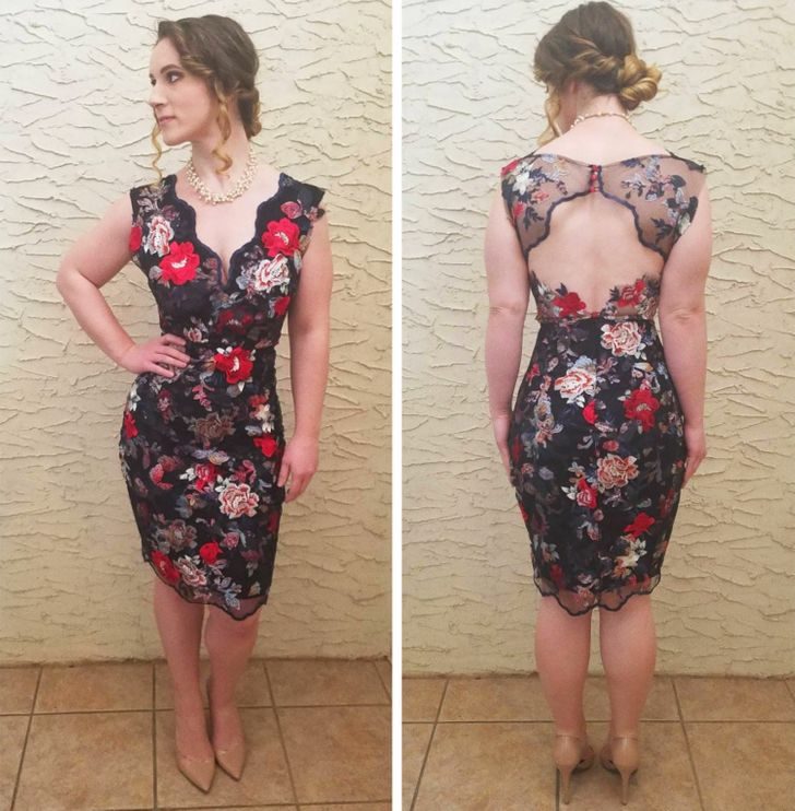 «Эта ткань оказалась настолько потрясающей, что я просто обязана была ее купить. Сшила из нее коктейльное платье с открытой спиной на свадьбу»