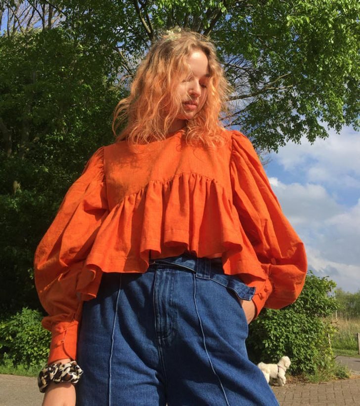 «Моя новая любовь — объем. Изначально я задумывала сшить платье, но ткани не хватило, хотя у меня было целых 4 м. В результате получилась блузка»