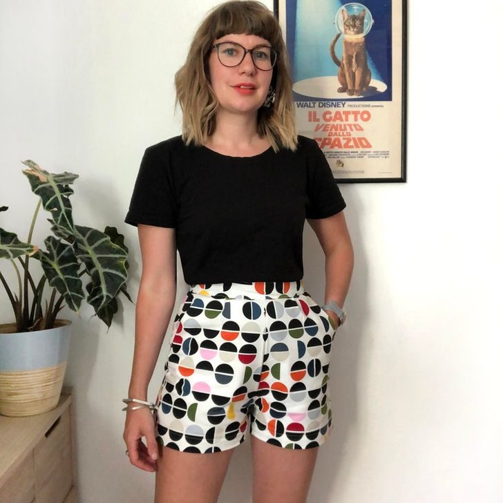 «Я стараюсь шить себе модную одежду сама. Вот, например, мое последнее творение — шорты с карманами»