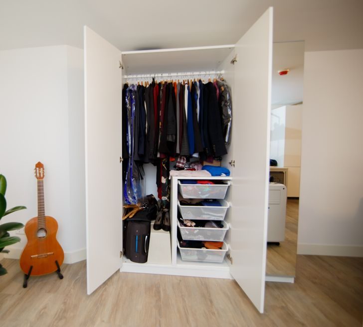 Купить «временный» складной шкаф для одежды (идеально, если часто переезжаете).
